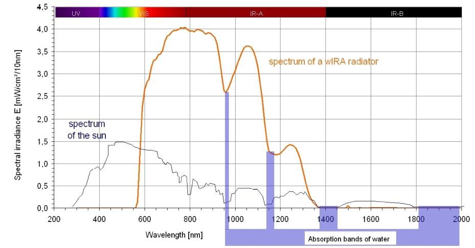 WIRA(威伐)是由德国的生物物理学家G.Hoffmann发明的。他首先将31种介质按照不同的比例、不同的数量经过7种不同的程序反应后获得了一种混合物,然后将其溶于水中形成一个水滤系统并将其置于一个光学镜头中,WIRA系统由此而生。卤素光源发出的原始光在经过WIRA系统后,会形成一个“彩虹窗口”的效应,即容易引起皮肤灼热感的部分红外及远红外光波会被此窗口滤掉,最终通过的是对治疗有积极意义的580---1200nm为主导的“彩虹之光”,它将对人类的疼痛、组织修复、慢性病治疗等带来“雨过天晴”的“彩虹效应”。